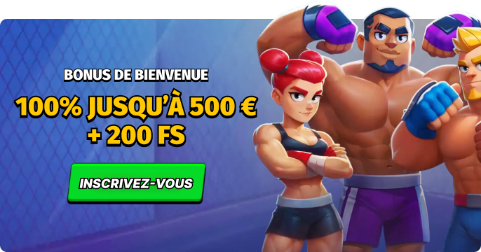 | Bonus de bienvenue | 100% jusqu'à 500€ + 200 FS + 1 Bonus Crab | Casino |